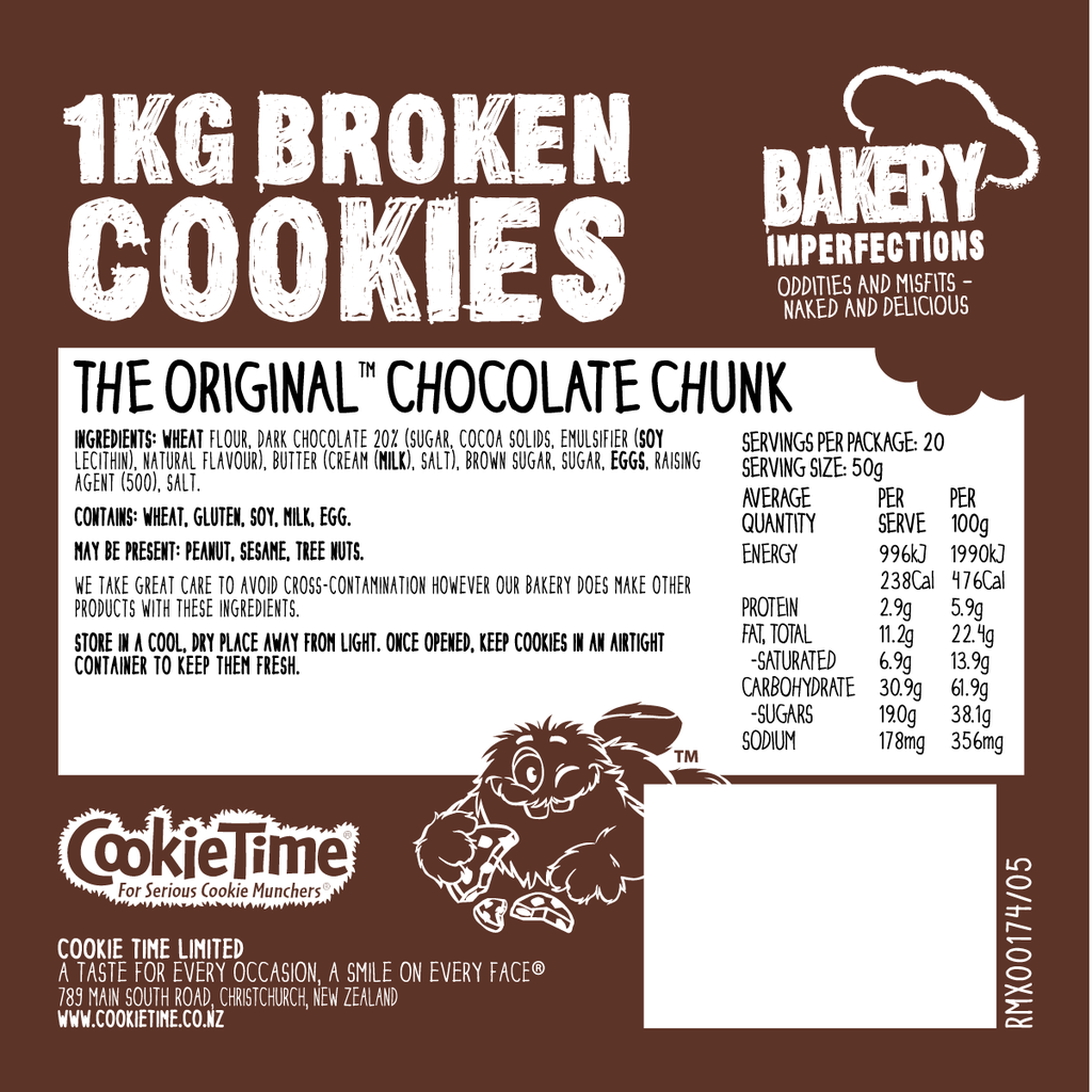 - 1x 1kg Original Chocolate Chunk Broken Cookies - Bakery Imperfections