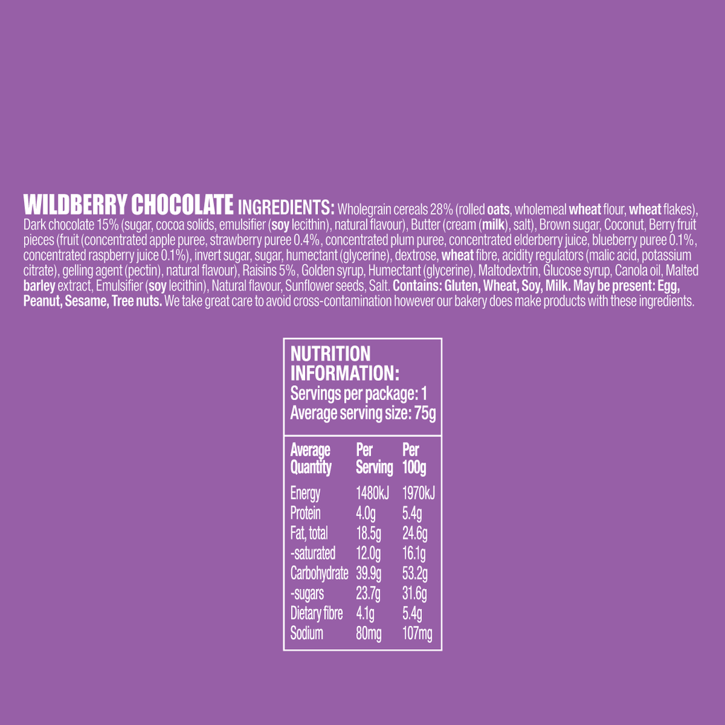 - 1x 75g Wildberry Chocolate Bumper Bar