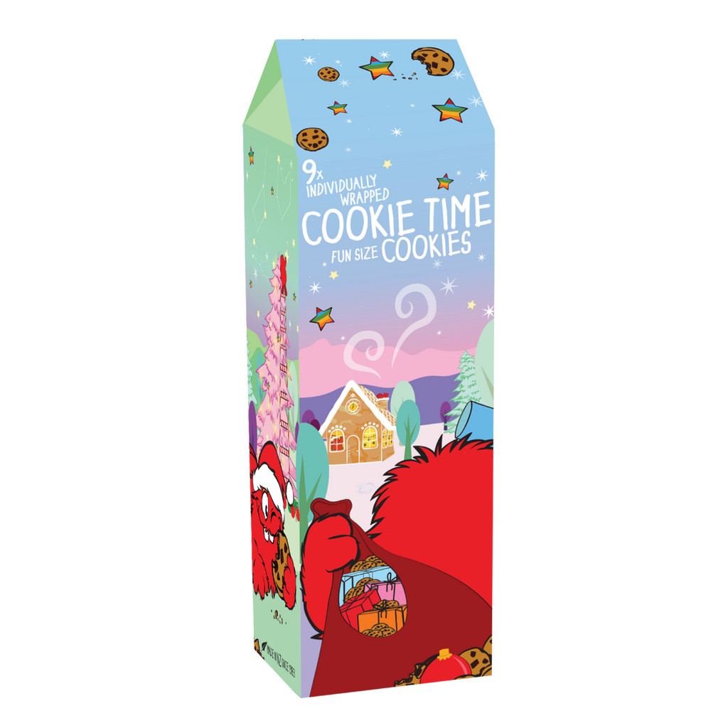 - 1x 1000ml Gingerbread House Milk Carton containing 9x 20g Original Chocolate Chunk Fun Size Cookies