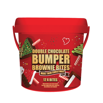 - 1x Double Chocolate Bumper Brownie Bites Christmas Bucket (12x individually wrapped bites)