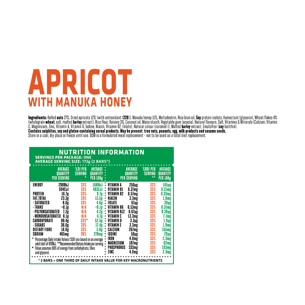Real apricots are perfectly balanced with the distinctive sweetness of Manuka honey in this great-tasting flavour.