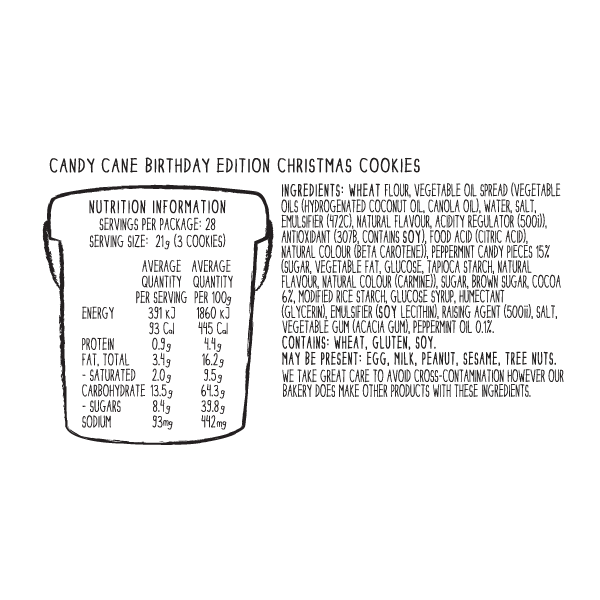 - 1x 2L Candy Cane Birthday Edition Christmas Cookies Bucket