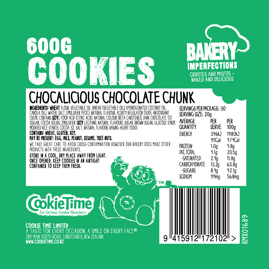 600g Chocalicious Chocolate Chunk Cookies - Bakery Imperfections
