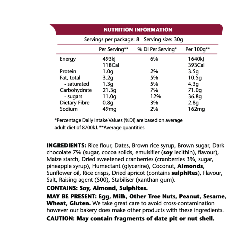 - 30x Cranberry Chocolate Power Bites (8 individually wrapped bites per pack)